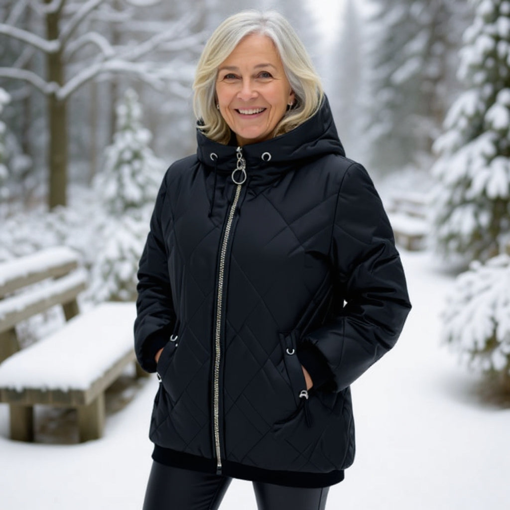 Izabela™ | Pikowana Kurtka z Kapturem i Zamkiem Premium