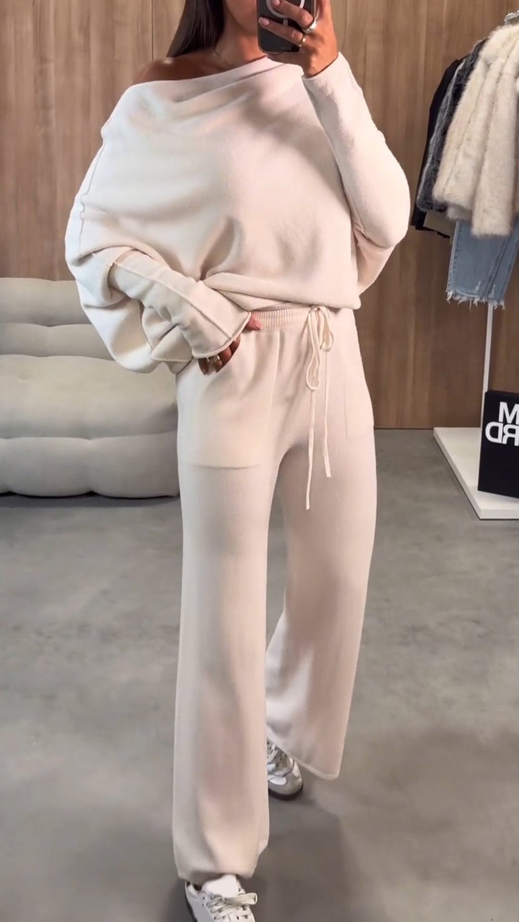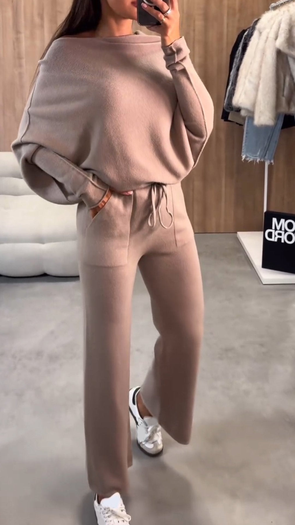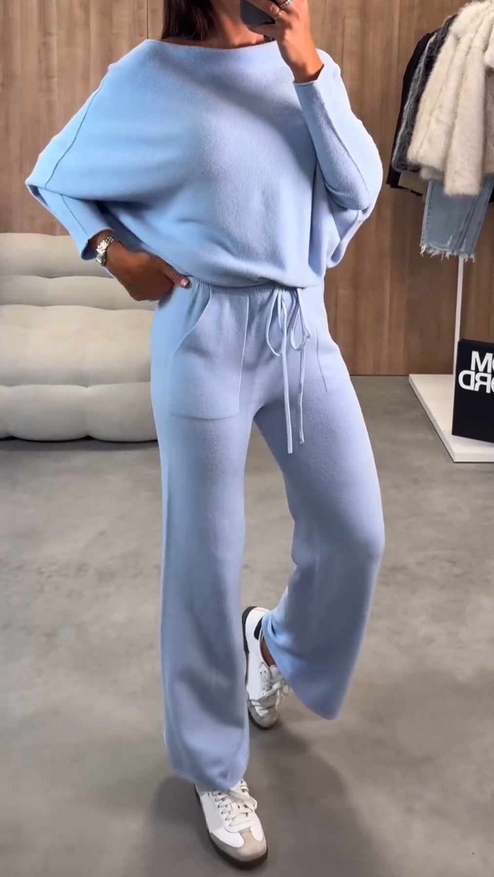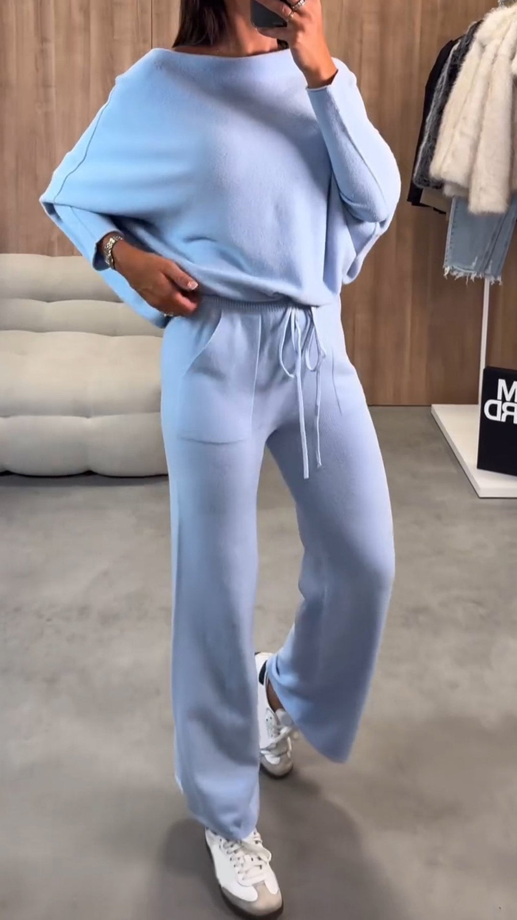 Damski garnitur z długimi rękawami i rękawami nietoperzowymi, z dzianiny o swobodnym kroju